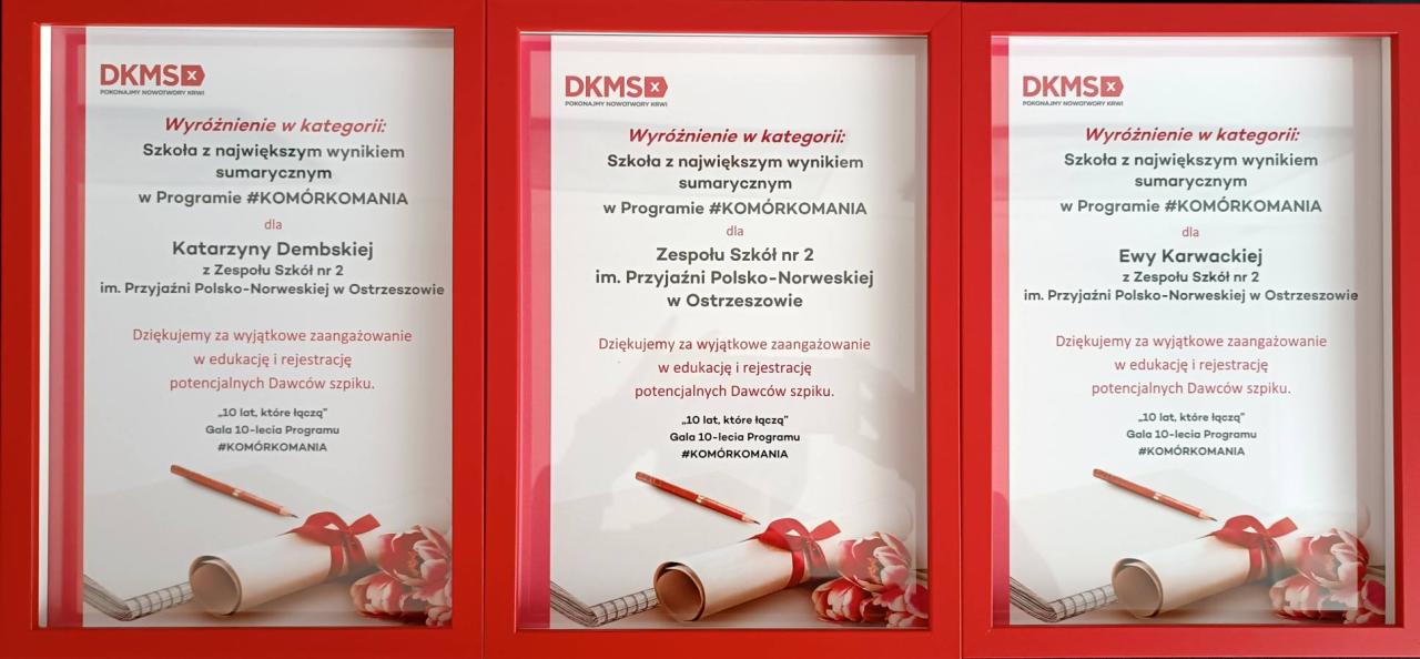 Nasze szkoły otrzymały wyróżnienie w kategorii SZKOŁA Z NAJWIĘKSZYM WYNIKIEM SUMARYCZNYM osób zarejestrowanych, a wraz z nim podziękowania za wyjątkowe zaangażowanie w edukację i rejestrację potencjalnych Dawców Szpiku.